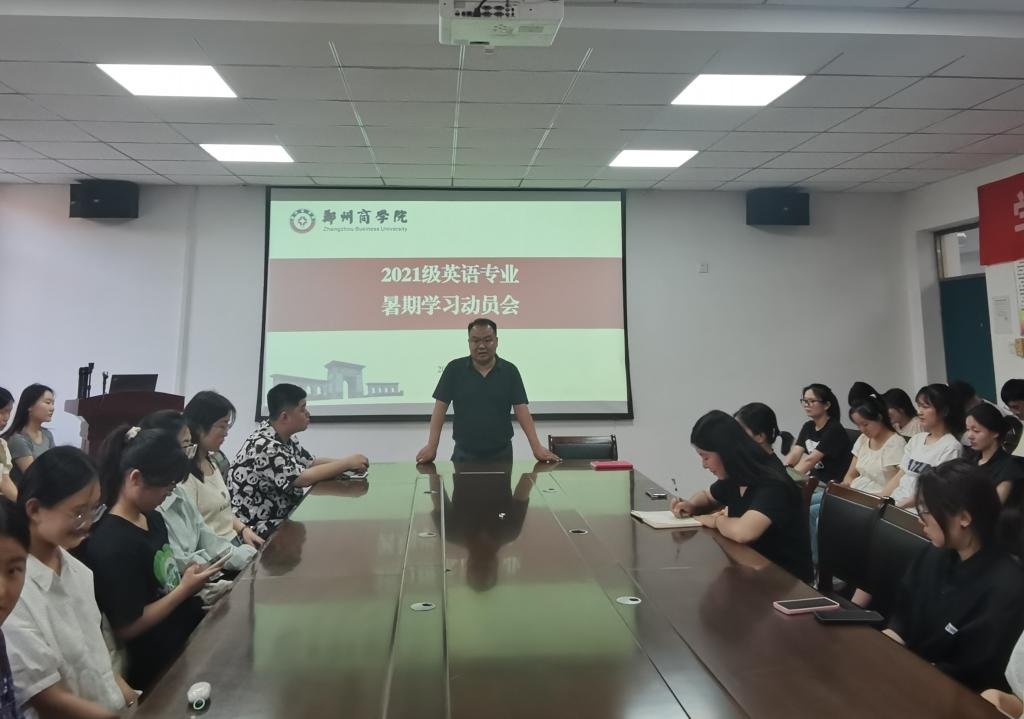 6月27日下午,我院召开了2021级英语专业暑期学期启动会。我院院长邱培磊、英语专业教研室主任程玮、考研方向课教师代表曹晓晨和刘俊娟以及留校备考的21级英语专业学生参加了会议。