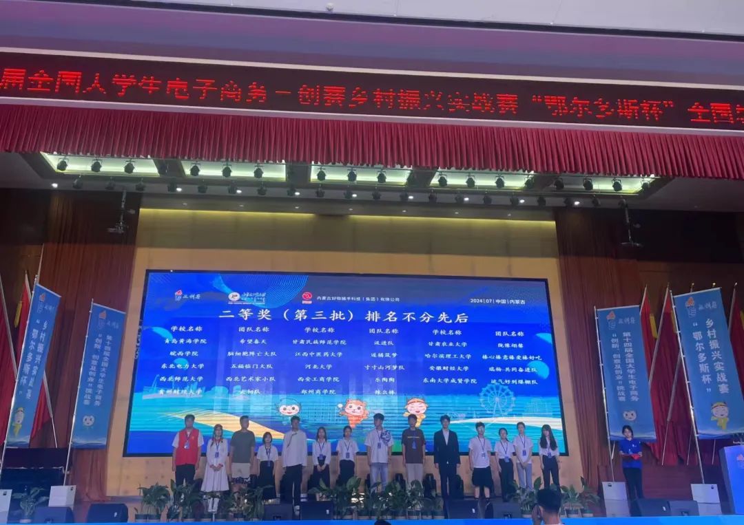 2024年7月27日-29日,第十四届全国大学生电子商务“创新、创意及创业”挑战赛(以下简称“三创赛”)乡村振兴实战赛“鄂尔多斯杯”全国总决赛在内蒙古自治区鄂尔多斯市达拉特旗举办。冰球官网外国语学院商务英语专业学生刘雨晴、刘新雨、王梓儆、田鑫利、杜凡组建的“辣么棒”团队(指导教师:苏宝英、王玉)参赛,荣获全国二等奖。
