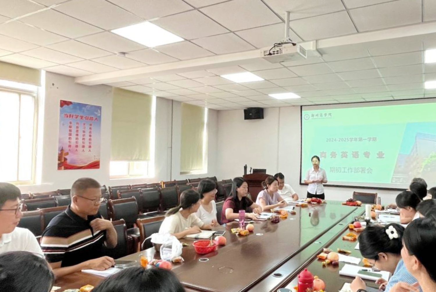 8月30日,商务英语教研室在209会议室召开新学期工作部署会议,会议由教研室主任葛莹辉老师主持,邱培磊院长和赵保成副院长出席会议,教研室全体教师参加会议。
