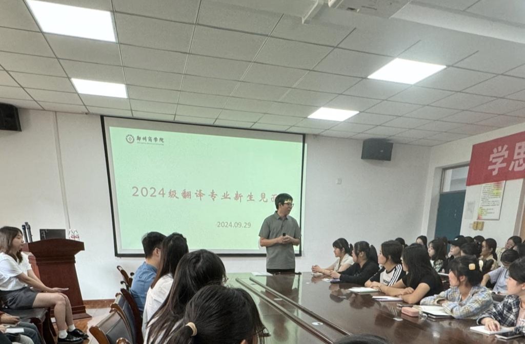为进一步帮助新生适应大学生活,制定好学业规划,以更加饱满的精神和奋进的姿态开启新的学期,9月29日上午8:30翻译专业在外语楼209会议室举行了2024级新生见面会,翻译教研室主任郜万伟主持会议。我院副院长赵保成、教师代表,以及全体2024级翻译专业全体同学参加了见面会。
