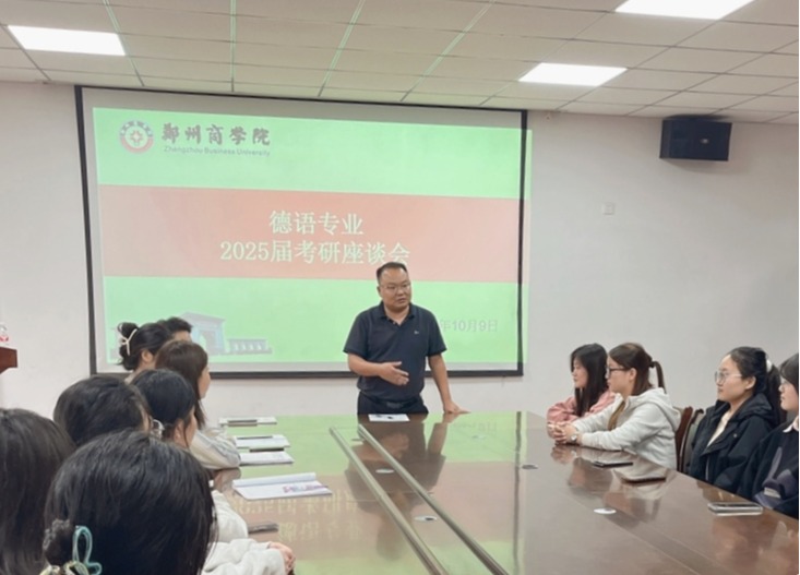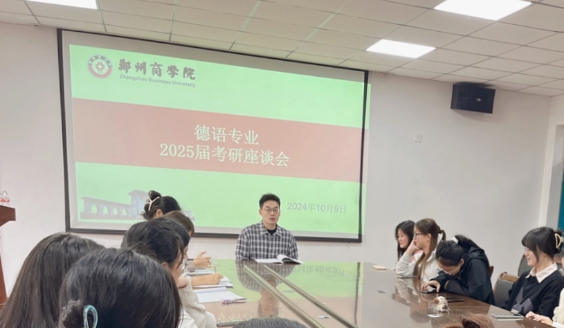 为深入了解2025届学生考研复习状况,进一步帮助学生明确考研目标,坚定考研信心,切实提高自身考研规划能力,2024年10月9日,我院德语专业在外语楼W209召开了考研师生座谈会,我院院长邱培磊、德语专业负责人魏广龙、德语专业教师团队以及全体2025届德语专业考研学生参加了本次座谈会。