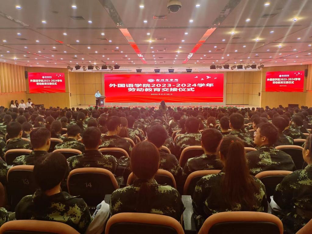 活动在庄严的国歌声中拉开序幕,会议由丁震霆老师进行主持。随后,在学生代表发言环节,优秀劳动学生代表王志爽同学上台发言。他讲到在每一天的劳动中,看着落叶,纸屑的减少,看着干干净净的校园,成就感不自觉地就涌上心头,也不自觉地有了保护环境的责任感。同时,新生代表刘硕蕾在发言中说到,希望大家在之后的大学生活中能树立正确劳动观念,新生同学们能让会劳动、善劳动成为郑商人的高贵品质,在劳动中得到锻炼,养成热爱劳动和保持校园卫生的好习惯。紧接着新生、老生代表有序入场,进行劳动工具交接仪式。