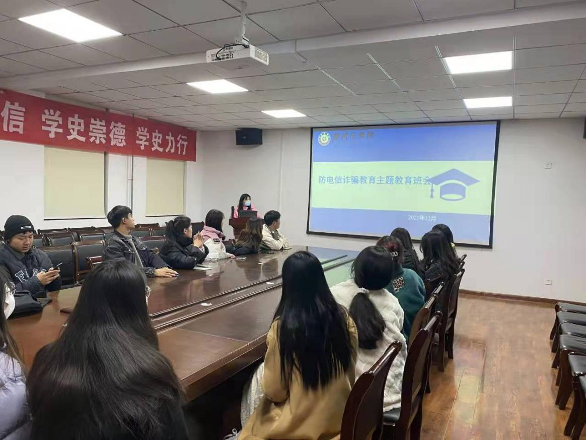为切实增强广大学生对电信网络诈骗的安全防范意识,提高学生的自我保护、自我应对能力,切实保护学生的合法权益,保障学生的财产安全。12月17日,我院各班组织开展了以“防范网络电信诈骗主题教育”为主题的班会。