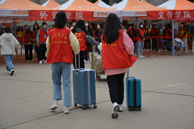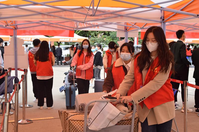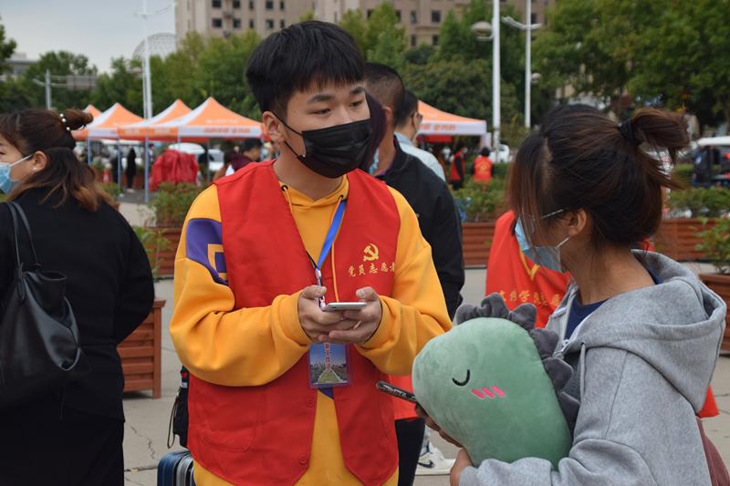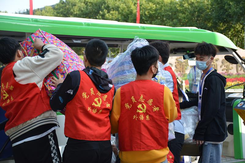 彩旗飘飘,横幅满挂,为帮助2021级新生顺利完成入学,引导学生党员在服务校园、服务师生中更好地发挥先锋模范作用,2021年10月16日,外国语学院学生第一、第二学生党支部组织学生党员组成志愿者小分队,分别在校门口、寝室楼等值班点积极引导新生完成报到。