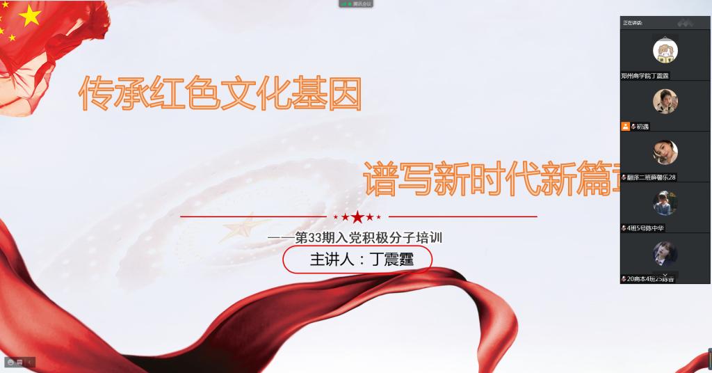 2021年10月18日晚上7:00,外国语学院第三十三期入党积极分子第四次培训课通过线上腾讯会议顺利开展。参与本次培训课的有主讲老师丁震霆老师,以及外国语学院第三十三期全体入党积极分子。