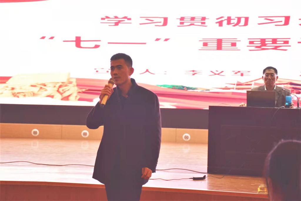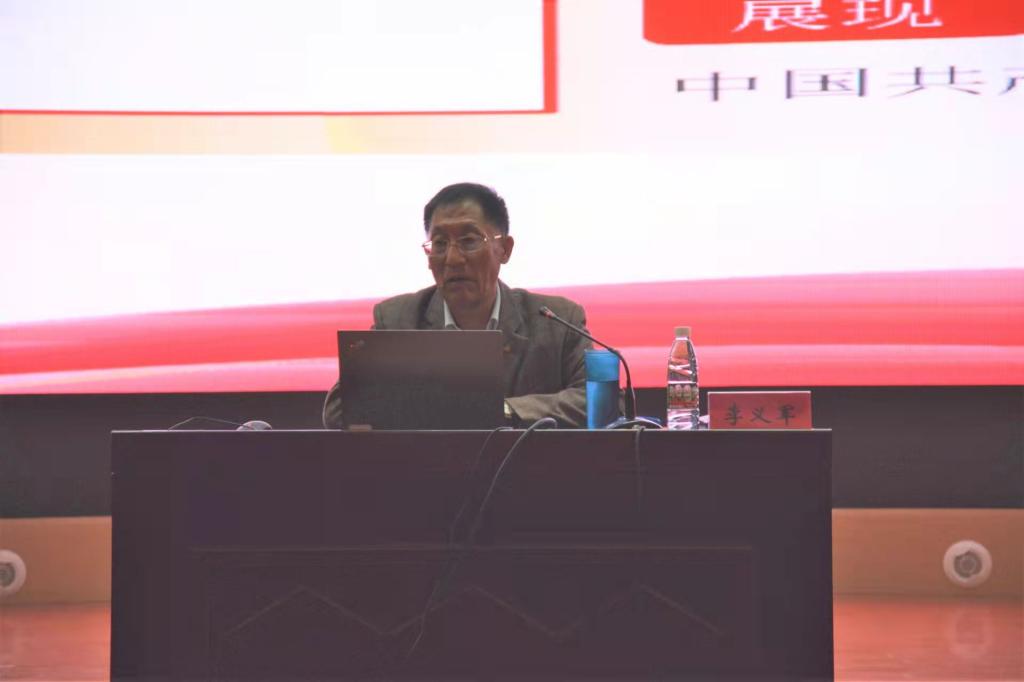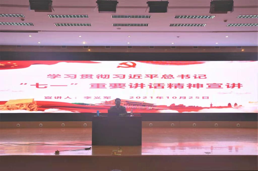 为深入学习贯彻习近平总书记“七一”重要讲话精神,进一步推动党史学习教育深入开展,10月25日下午,我院在图书馆一楼报告厅举行学习贯彻习近平总书记“七一”重要讲话精神宣讲报告会,外语学院全体在校生党员,第十四期党员发展对象、33期积极分子参加会议,马克思主义学院李义军教授为我院师生党员作报告。