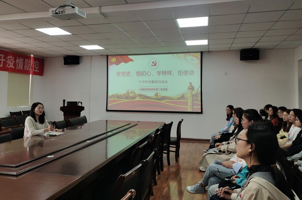 为深入学习领会习近平新时代中国特色社会主义思想,外国语学院学生第二党支部开展 “学党史、悟初心,学榜样,担使命”主题党日活动。
