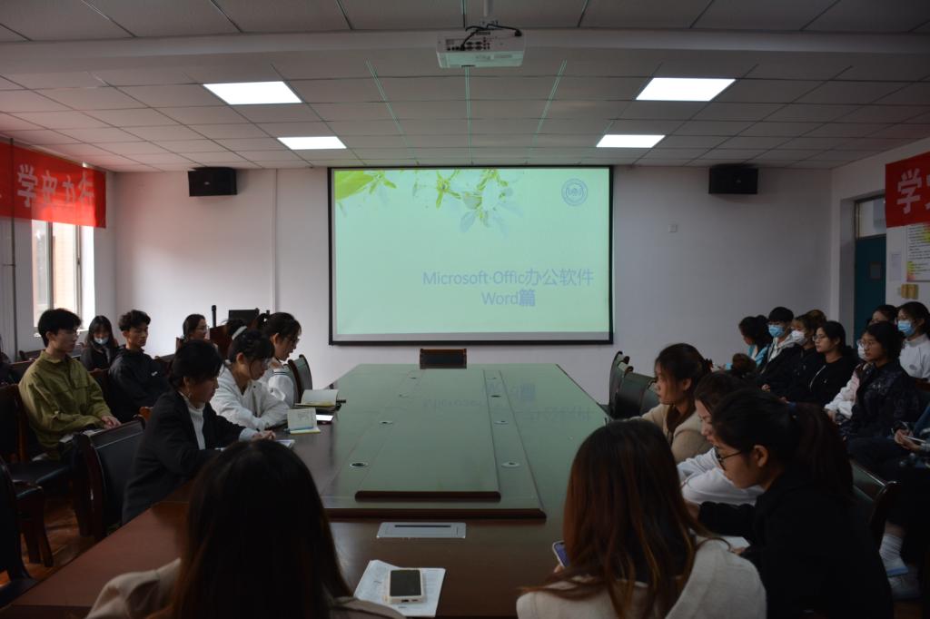 培训伊始,李同学主要针对word文档的基础操作进行了详细的讲解,她通过理论与实践相结合的方法,深入浅出地对日常工作中的常规操作和易犯错误做了具体的阐述和重点提醒。接着,针对团委书记办公室值班工作,李同学讲述了接听电话的基本礼仪,内容清晰易懂简明扼要。参与培训的同学认真积极,熟练掌握了word文档的基本知识技能,对WPS的使用有了更深的认识。最后,主席团成员陈文惠要求各部门工作人员增强自身学习主动性,不仅学习要自主勤奋,工作也要积极主动,努力做好同学们的榜样和模范,做全面发展的新时代青年学生。