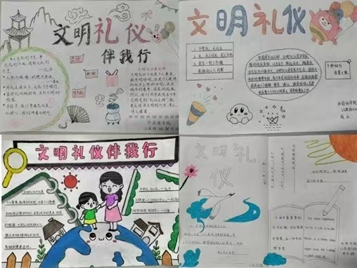 大家纷纷查阅有关文明礼仪的资料,在版面设计和所选内容上都下足了功夫,精心绘制了一幅幅内容积极向上,切合主题内容的手抄报。活动结束后,我院学生表明会在以后的日常生活中用实际行动来践行礼仪教育。