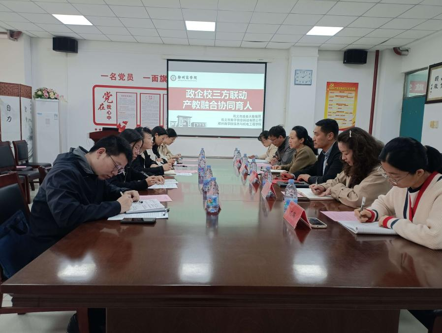 巩义市政务大数据管理局与信工学院领导在四号教学楼会议室会谈