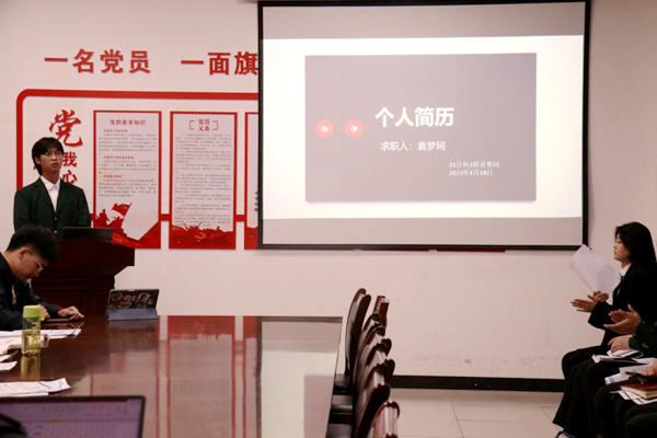 针对21级学生开展““简”自我风采,“历”职场未来”简历制作大赛,本次大赛复赛于5月9日下午4:40在4号楼举行。在经过初赛的层层选拔之后,20名优秀选手最终进入复赛。选手采用PPT演讲的形式向评委介绍自己的作品,点出自己简历的得意之处,为自己的简历加分。参赛选手都充满自信,大胆的向评委及观众们讲述自己的就业意向,简历制作立意新颖,符合当代大学生发展特色。