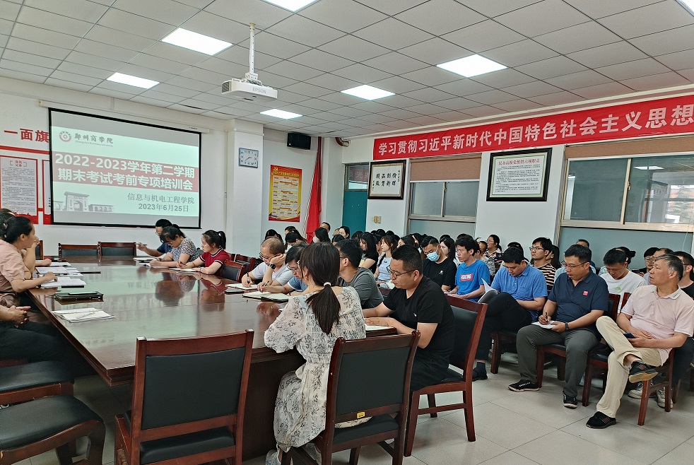 为确保我院本学期期末考试工作平稳有序进行,6月25日下午,信工学院在四号楼教学楼会议室召开了2022-2023学年第二学期期末考试考前专项培训会。张晓冬院长、周余书记、张伟华副院长以及信工学院全体教师参加了此次会议。