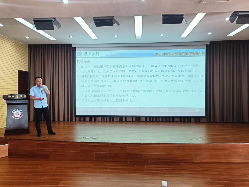 9月13日下午,西京学院计算机学院乌伟院长、电子信息学院郭建新院长、机械工程学院陈凯副院长一行三人,来到我院开展2024届研究生招生宣讲会。下午两点半,信工学院张晓冬院长、张伟华副院长和各教研室主任在图书馆五楼学术报告厅召开了2024届研究生招生宣讲会,信工学院相关专业近二百名学生参加了此次宣讲会。