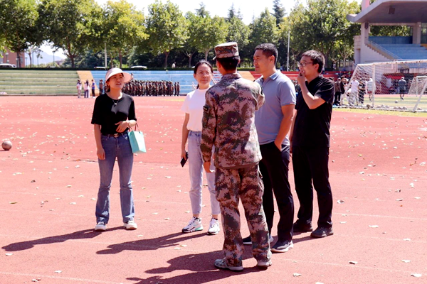 为深入了解信工学院2023级学生军训开展情况,提升学生参加军事训练的积极性,鼓舞军训士气。9月20日上午,信工学院院长张晓冬、党委书记周余、副院长张伟华以及辅导员老师到达军训训练场地慰问新生,并与新生亲切交谈,送上关怀。
