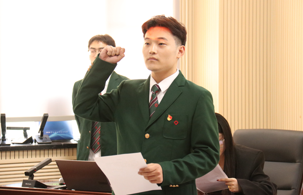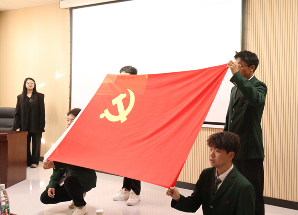 其次,由21网工1班高轩同学带领新党员进行入党宣誓。新发展党员面向党旗,高举右拳庄严宣誓,领会中国共产党人的初心使命,感悟其思想内涵与精神力量。铿锵的誓言、坚定的眼神,是他们面对党、国家和人民作出的庄严承诺,也是向先烈表达自己最崇高的敬意,传承永不熄灭的精神力量。