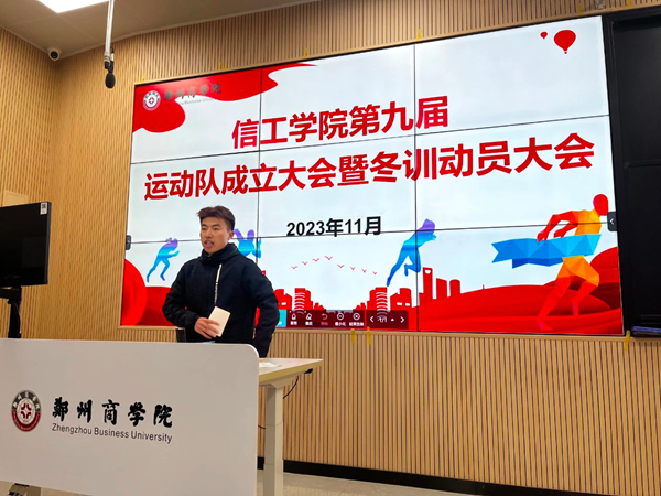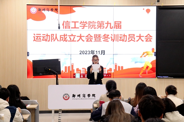 回顾2022-2023学年我们各训练队在校级和省级比赛中都取得了十分优异的成绩,也向学校展示了我们信工学子的精神风貌,让大家见证了我们学院齐心协力、勇攀高峰的团队精神。希望通过此次会议,全体运动员都能积极投入到2023年的冬训活动中,脚踏实地、刻苦训练、打牢基础,为学院之后的体育工作继续争光添彩。