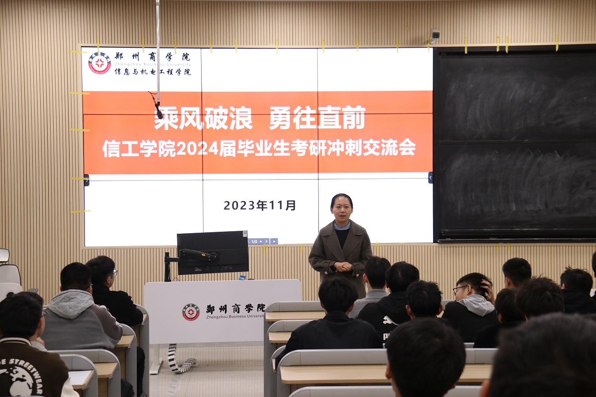 张晓冬院长在对机械、电气、电子与通信专业同学们分享了考研冲刺阶段的心态调整和时间保证等经验,并对备战考研的同学们提出鼓励和期许。她表示,信工学院高度重视学生考研帮扶工作,希望同学们能够坚定考研信心、稳住心态、不要松懈、艰苦奋斗,顺利考取自己的理想院校。