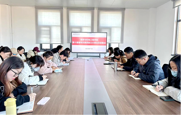 为加强信工学院辅导员队伍专业化职业化建设,增强育人本领,提升立德树人工作成效,我院于11月14日召开第十届辅导员素质能力大赛动员部署会。学院党委书记周余、团委书记张璐阳及全体辅导员参加会议。