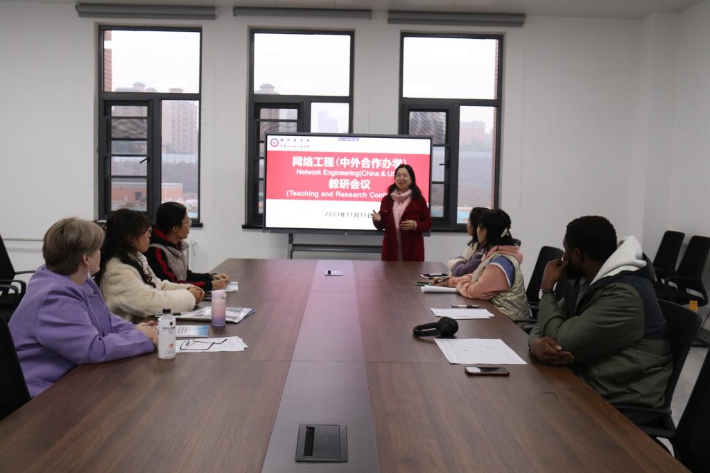 为了促进信工学院网络工程(中外合作办学)专业教学的顺利推进,加强中外双方教师及学生之间的进一步沟通,我院于11月15日下午在信工大楼三楼会议室召开了网络工程(中外合作办学)专业教学研讨会。参加会议的有信工学院网络工程教研室主任龙瑞老师,国际交流合作处熊雅洁老师,外教老师Katharine和Olufemi,以及相关辅导员,会议由信工学院教学干事周文倩老师主持。