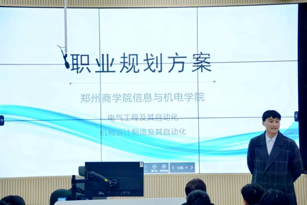 首先张工对电气工程及其自动化和机械设计制造及其自动化专业进行了详细解读,介绍了电气和机械专业学习内容以及毕业之后的工作内容。让学生对本专业有了更加细致全面的了解。其次张工从自动化行业工厂生产的现状、行业发展趋势、行业人才寻求状况等方面对自动化行业现状进行了分析。让学生从工作实践的角度认识了自动化行业的发展。最后张工根据自身求学和工作经历,结合职业生涯规划流程特点从自我认知、职业认知、职业路径规划、职业规划与实施计划、评估与备选方案等方面向同学们讲解了如何做好个人职业生涯规划。