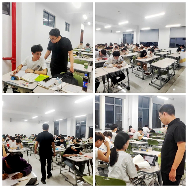 为落实冰球官网分层分类教学改革工作,全过程跟踪和指导学生考研,进一步做好2025届学生考研学习服务工作。2024年5月14日晚上,信工学院张伟华副院长、考研教研室张永鑫主任深入考研自习室看望正在备战考研的2021级学生。