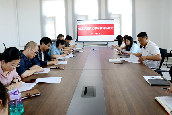4月28日,我院组织召开党纪学习教育部署会。党委书记周余宣读了《信工学院党纪学习教育工作方案》,部署学院党纪学习教育工作。他强调,要深刻领会开展党纪学习教育重大意义,切实增强开展党纪学习教育的政治自觉、思想自觉和行动自觉,推动党的创新理论入脑入心,推动全面从严治党向纵深发展。