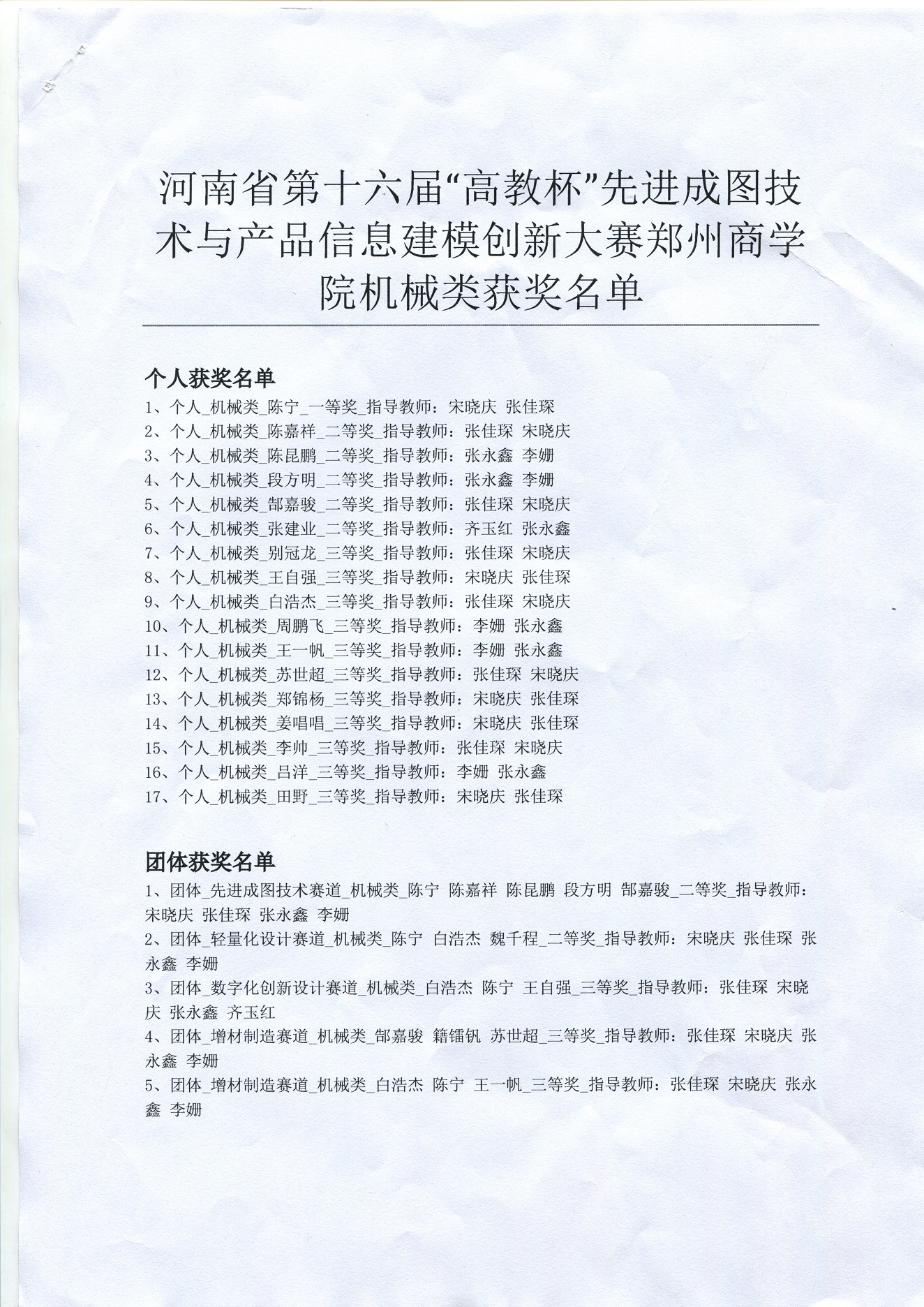 此次省赛经校级初赛选拔,信工学院共派出25名学生参与机械类比赛。经过激烈角逐,共17名同学荣获先进成图赛道个人全能奖,一等奖1名,二等奖5名,三等奖11名,其中参赛选手陈宁荣获个人全能一等奖,个人排名河南省第25。其他分赛道也有斩获,增材制造赛道团体二等奖,轻量化设计赛道团体三等奖,数字化创新赛道团体三等奖,冰球官网荣获河南省机械类团体二等奖,成绩再创历史新高。