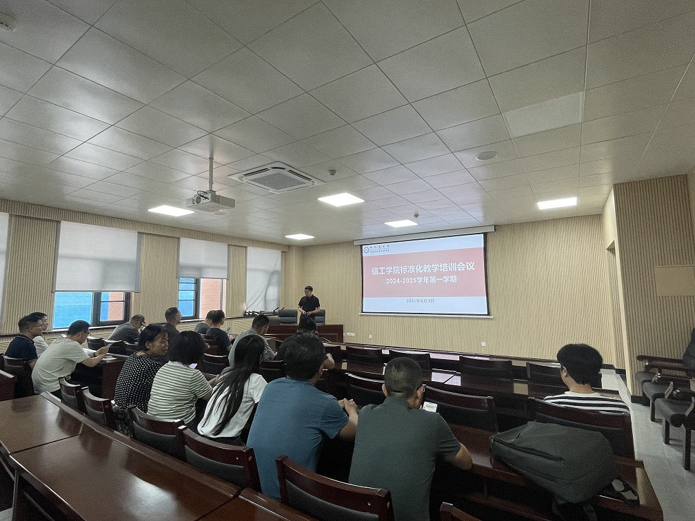 为了规范兼职教师和企业教师教学工作,明确学院教学工作要求,我院于9月3日下午在信工大楼三楼大会议室召开了2024-2025学年第一学期信工学院标准化教学培训会议。会议由信工学院副院长张伟华主持,全体兼职教师和企业教师参加。