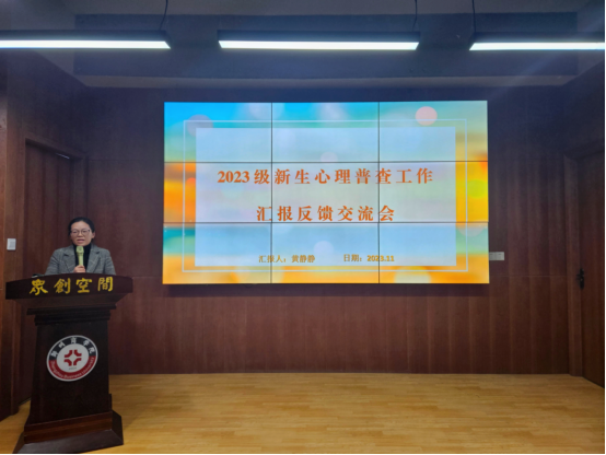 为科学全面地了解冰球官网2023级新生心理健康状况,切实提升开展心理健康教育与危机预警防控工作的精准性、有效性,心理健康教育中心于11月15日下午在众创空间三楼路演厅组织开展新生心理普查反馈交流会,此次会议由心理健康教育中心黄静静老师主讲,各学院新生辅导员参加。