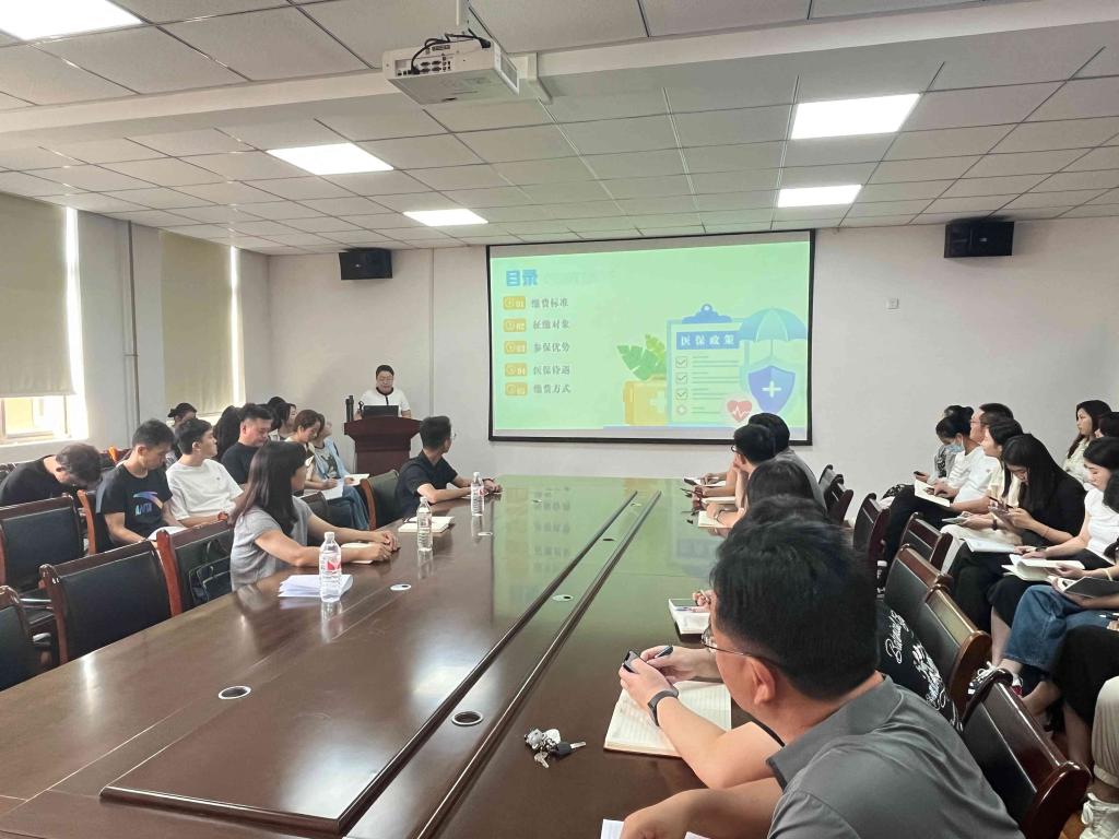会议伊始,医保中心副主任刘振亚向参会老师们介绍大学生医疗保障的相关政策以及参与医保的重要性,并强调医疗保障政策关系着每个人的身体健康和家庭幸福,了解和掌握这一政策,对于我们合理利用医疗资源、减轻医疗负担具有重要意义;接着,医保局宣教科郅瑞奇重点围绕缴费标准、征缴对象、参保优势、医保待遇、缴费方式等内容展开介绍,并就对老师们反馈的医保问题进行耐心解答,使大家对医疗保障政策有了更加清晰的认识。