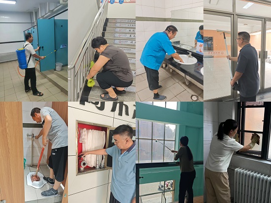 同时,教学楼管理员对教学楼公区卫生进行全面打扫、消杀,排查水电设备,消防设施、消防通道等,全面消除安全隐患,确保教学楼环境整洁、安全有序。