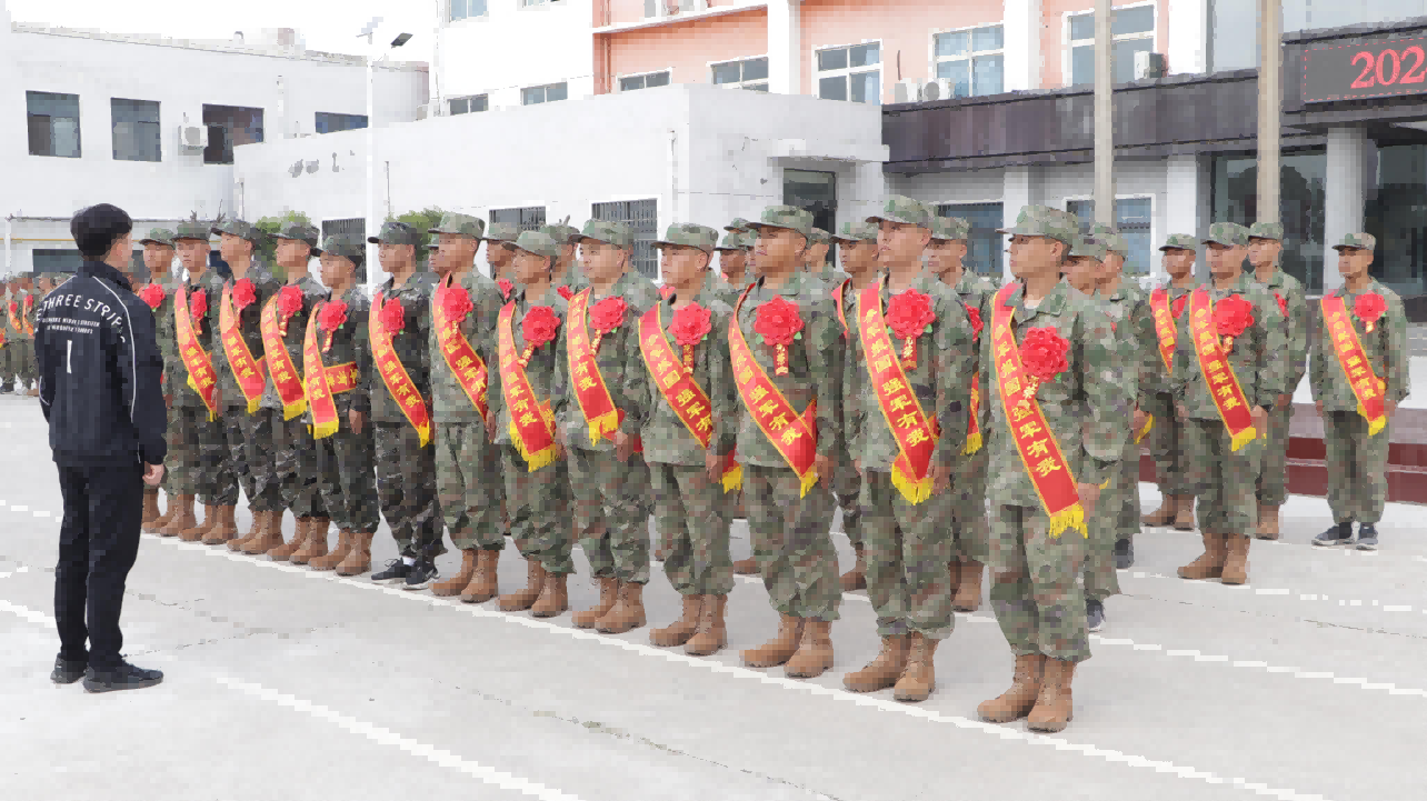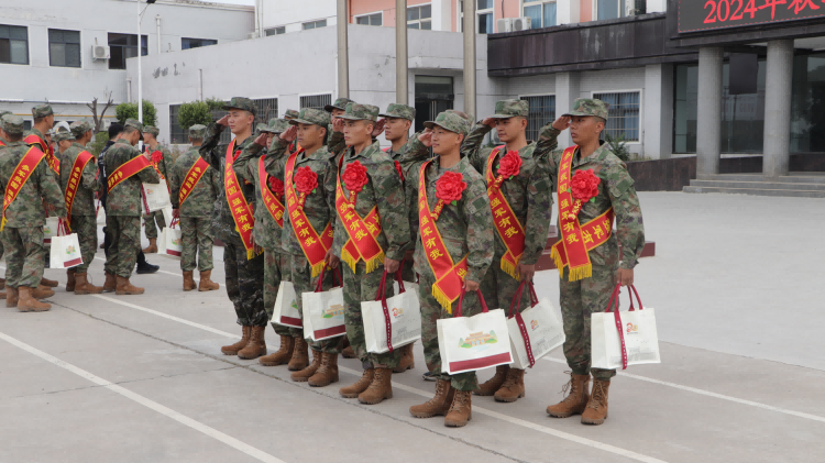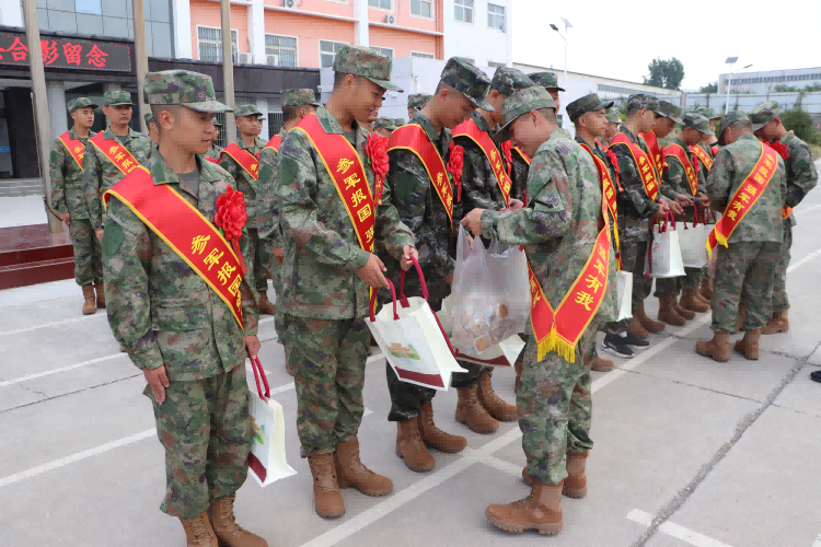 现场全体新兵身披戎装、胸佩红花、肩披绶带,个个精神抖擞,满怀壮志豪情,充分展现了新时代青年积极响应国家号召,矢志报国的精神风貌。