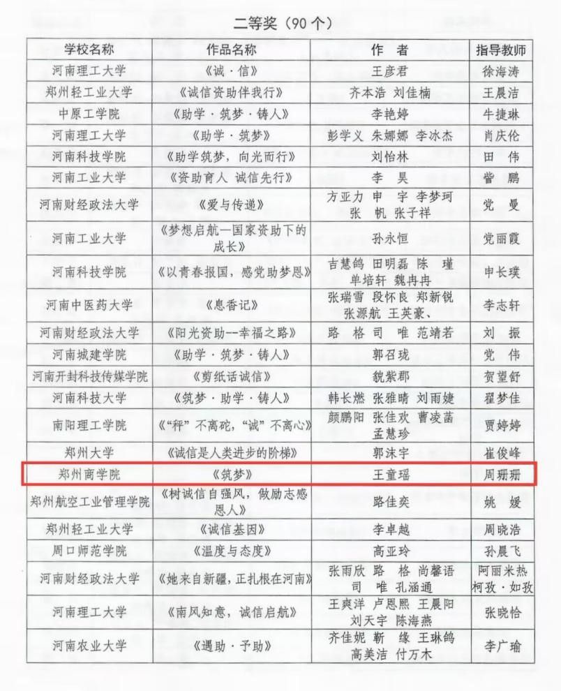 近日,河南省教育厅等五部门联合公布了2023—2024学年度河南省“诚信校园行”学生资助公益广告设计大赛结果,冰球官网《筑梦》(作者:王童瑶,指导老师:周珊珊)作品入围并斩获佳绩,荣获二等奖。
