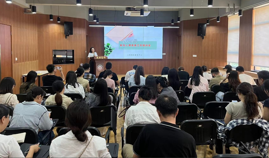 为了解新生心理健康情况,预防校园心理危机事件,进一步提升心理健康教育工作的针对性和实效性,心理健康教育中心于9月20日上午在众创空间录演厅组织召开了2024级新生心理普查工作培训会。培训会由心理健康教育中心黄静静老师主持,2024级新生辅导员参会。