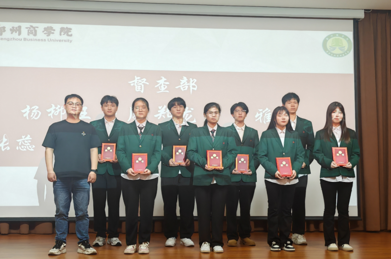 会议接下来宣读了第七届主席团成员名单,并由贺萌科长为他们颁发聘书并合影留念;随后宣读了第七届宿管会干部成员名单,并由贺嘉鑫老师为新聘学生干部颁发聘书。