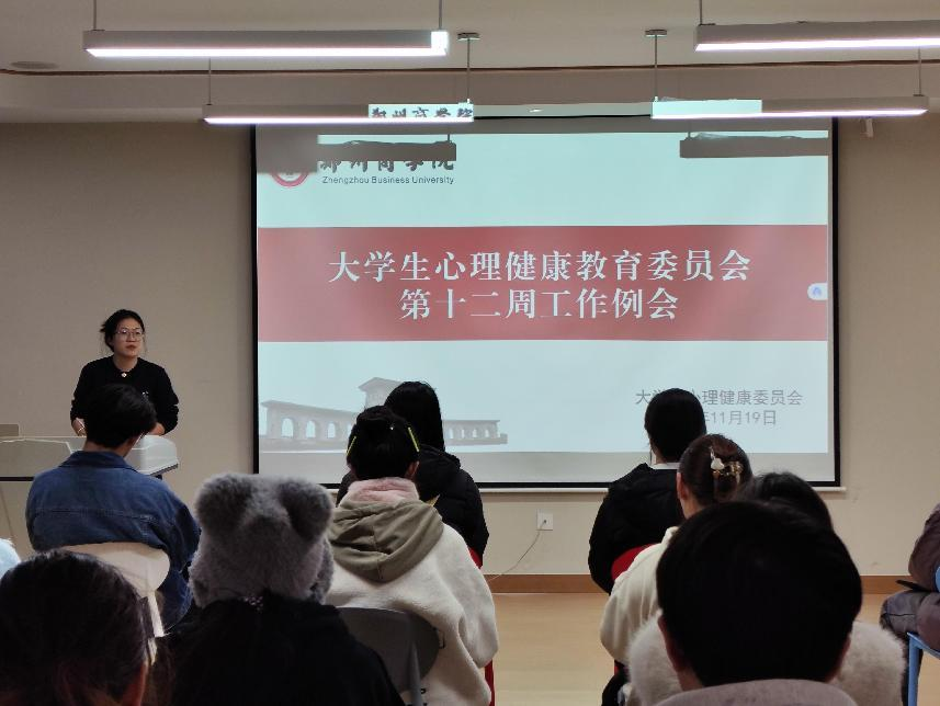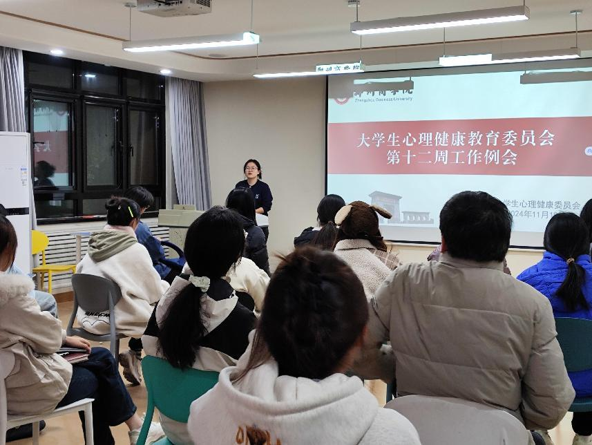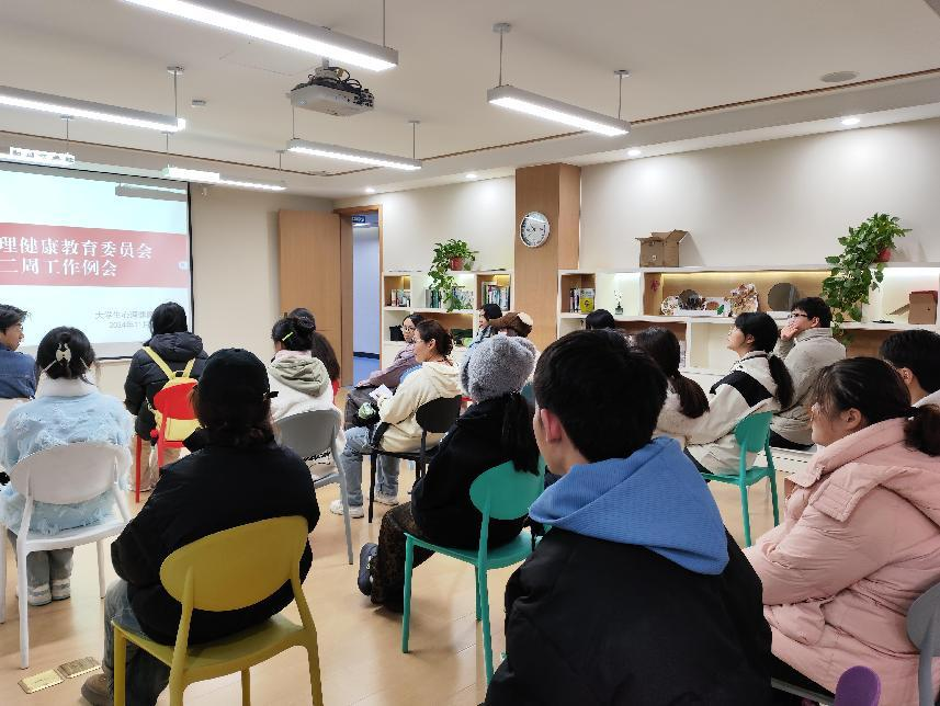 2024年11月19日,大学生心理健康委员会工作例会在心理健康教育中心团体辅导室举行,此次会议旨在进一步推动校园心理健康工作的开展,对上周工作的总结,以及新一周的工作安排,整体提高大学生心理健康委员会的工作技能和能力。