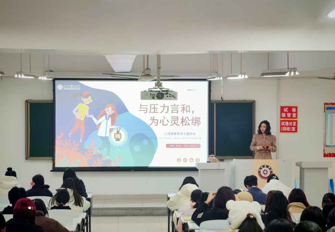 为了帮助2024级心理委员深入理解压力的本质,掌握有效的压力管理技巧,并培养积极的心态,从而更好地服务于班级心理健康工作。心理健康教育中心于12月11日下午在广恩楼开展“与压力言和,为心灵松绑”第五期培训活动,本次培训由心理健康教育中心李云佳老师主讲。
