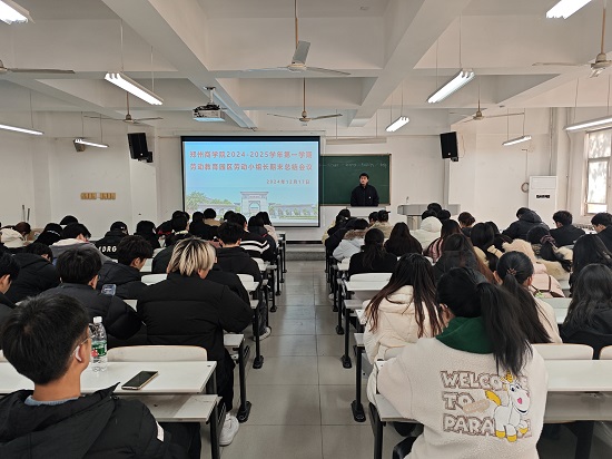为总结经验,持续做好学校劳动教育工作,不断提升学生专业技能,2024年12月17日、18日,学务处劳卫科在2号楼2201教室与2301教室分别召开了劳动教育检查组、劳动小组长期末总结会议,各学院学生劳动教育负责人、工具房管理员、全体检查组成员及劳动小组长参加会议。